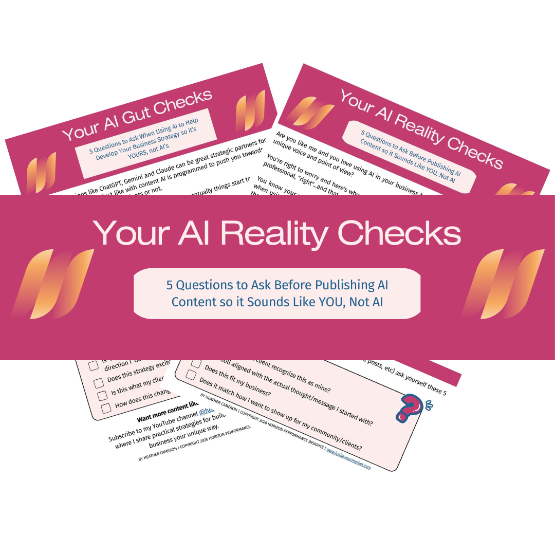 I get it. I use AI in my business every day and I know how it tries to flatten your voice. This checklist catches that before you hit publish, so you can get the benefits of AI without losing what makes you YOU.